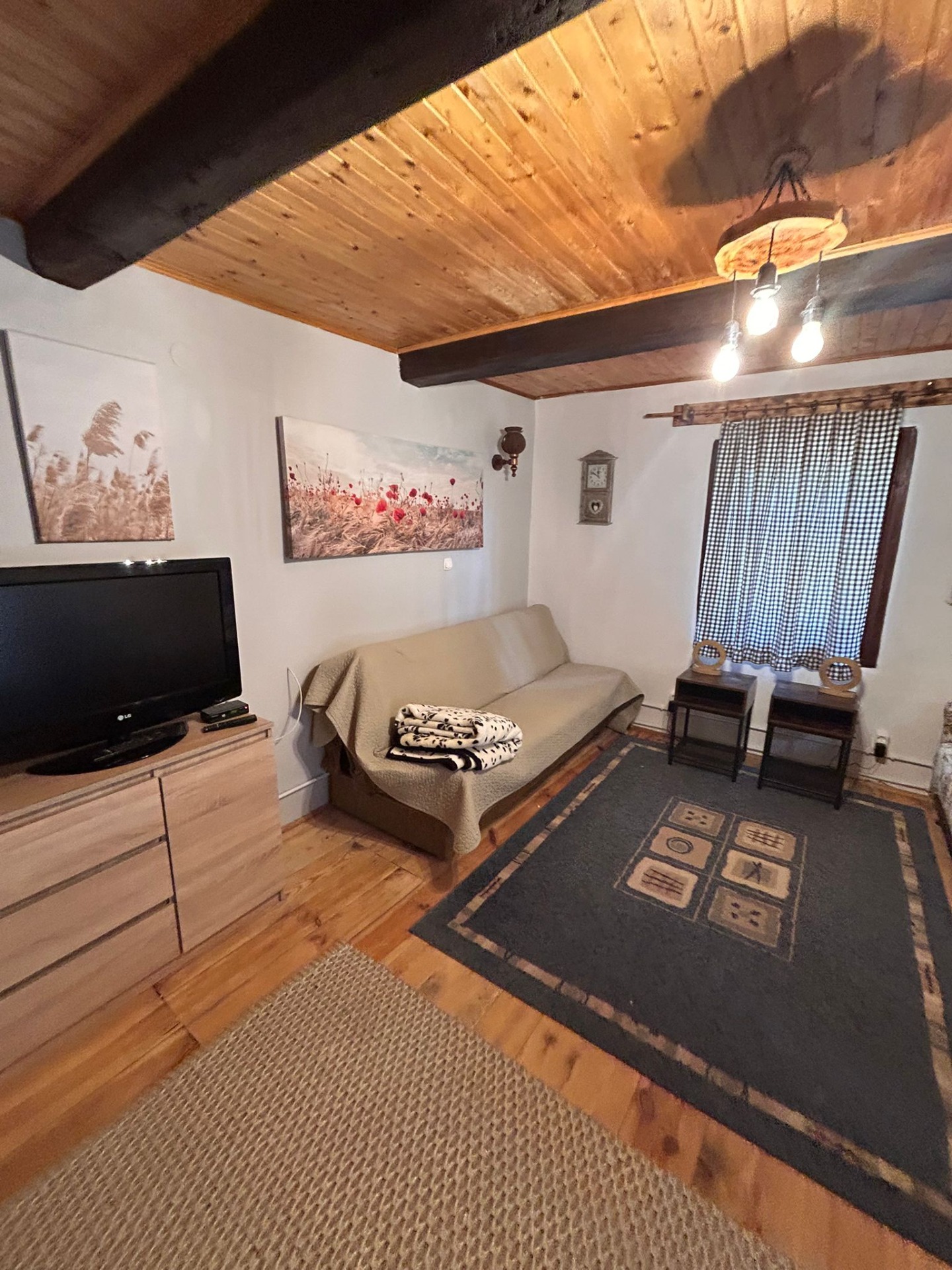 Chata z duszą – 80 lat historii pośród szumu drzew i ognia w kominku. Do dyspozycji gości dwa oddzielne pokoje, trzy rozkładane wersalki, TV, łazienki na zewnątrz (max. 6 osób).